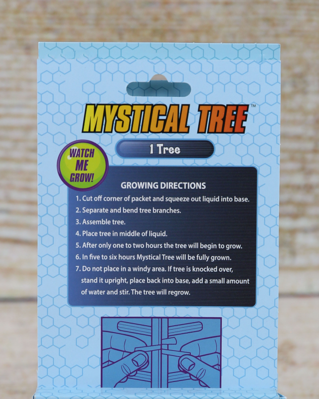 The amazing tree that grows like magic! In only 24 hours, the mystical tree will grow colorful crystals on its branches to create its alluring form. Each kit includes a paper tree, stand, growing-crystal liquid, and instructions.