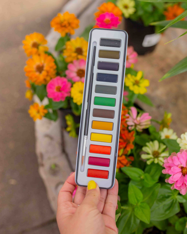 This curated palette features 12 essential colors chosen for their clarity and ability to blend beautifully. The set includes a professional-grade travel brush, making it a convenient, all-in-one kit for painting at home or out in the garden. Each pigment is highly concentrated, ensuring your artwork stays vibrant and true to life.