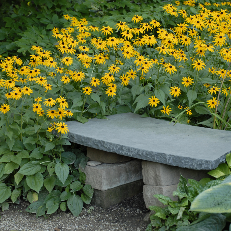 Dazzling mounds of yellow flowers with a deep brown center. Rudbeckia Goldstrum is very long blooming. It is unbothered by insects or drought. Seed pods make good winter interest. Strong upright habit.