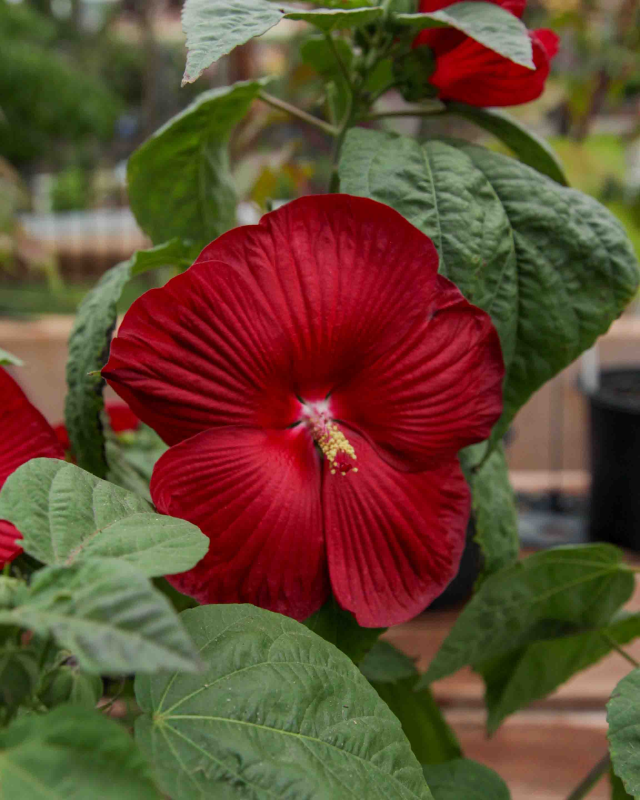 The Honeymoon Deep Red Hibiscus is a stunning perennial that adds a touch of drama to any garden. This vibrant plant features large, showy flowers that can reach up to 8 inches in diameter. The petals are a deep, velvety red, creating a striking contrast against the bright green foliage.