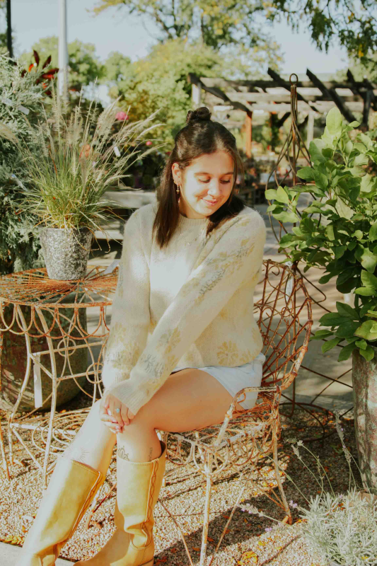 The Mystree Floral Pullover Sweater is a charming and cozy knit top designed to bring a feminine flair to your casual wardrobe. It's a statement piece that blends comfort with eye-catching detail, perfect for all-season wear.