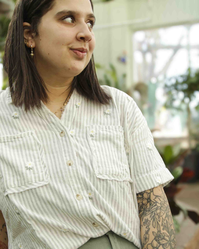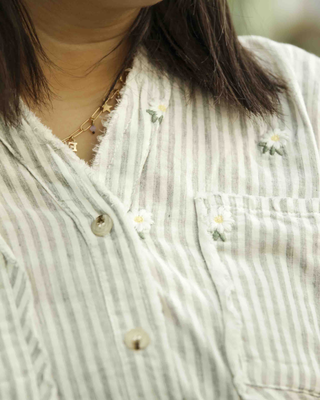 Embrace Spring in style with the Hem & Thread Floral Embroidered Boxy Shirt. This striped button-down features eye-catching floral embroidery, practical chest pockets, a flattering rounded hem, a relaxed dolman fit, and stylish cuffed short sleeves. 100% cotton.