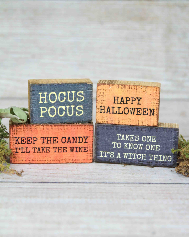 Bring the magic of Halloween to your home with the Hocus Pocus Block Sign from Primitives By Kathy. This charming wooden sign features the iconic Sanderson Sisters' names in bold, black lettering. The distressed finish adds a vintage-inspired touch, making it a perfect addition to any Halloween decor.