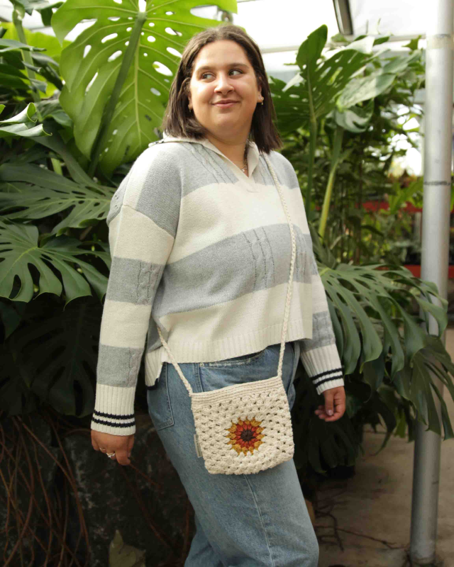 Add a touch of nature to your outfit with our stylish crossbody bag. Featuring a unique crochet design and a 32-inch strap, this bag is both functional and fashionable. The fully lined pouch provides ample storage for your essentials, making it perfect for everyday use. Spot clean only. A thoughtful gift for nature lovers!