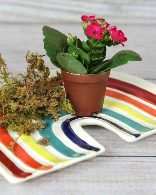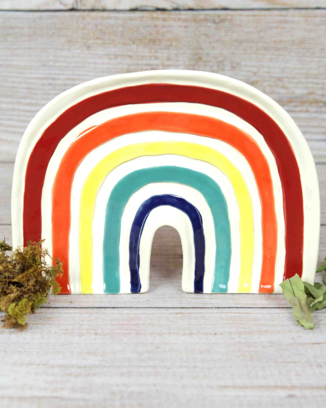 Bring a splash of cheer to your kitchen with the Creative Co-Op Hand-Painted Rainbow Plate. This unique stoneware plate features a vibrant, hand-painted rainbow design with a debossed texture for added dimension. Made from durable stoneware, it's perfect for serving snacks, and desserts, or adding a pop of color to your décor. A great gift for Pride month!