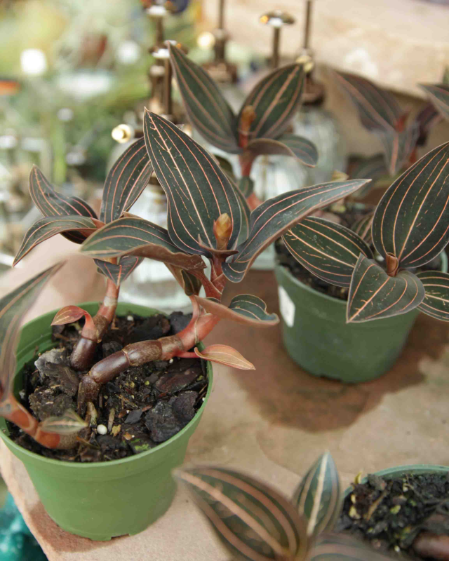 The Ludisia, commonly known as the Jewel Orchid, is a stunning addition to any indoor plant collection. This remarkable orchid is celebrated for its striking foliage, featuring deep green leaves adorned with intricate, shimmering patterns of silver and burgundy. The unique coloration and texture of the leaves create an eye-catching display, making it a favorite among plant enthusiasts.