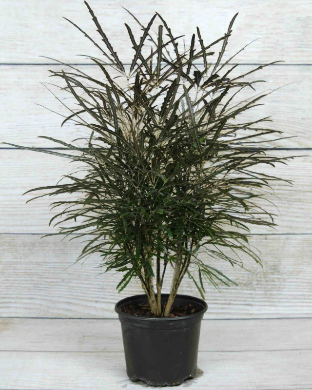 False Aralia is an upright shrub with long, slender leaves and deeply lobed with sawtooth edges. The leaves are a glossy dark green color, with new growth emerging in a coppery or burgundy hue. False aralia is a relatively easy-to-care-for houseplant. It thrives in moderate temperatures and humidity. With proper care, it can live for many years.