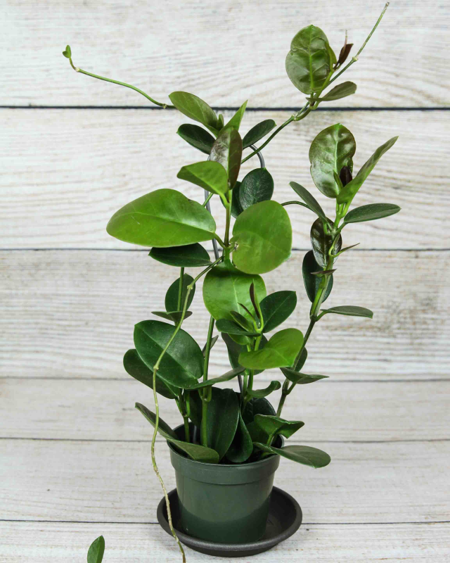 Hoya australis, or waxvine, is a charming Australian climber with glossy, succulent leaves. This easy-care vine loves bright, indirect light and infrequent watering. It produces clusters of star-shaped, fragrant white flowers with a red blush throughout the year. Perfect for beginners, Hoya australis thrives with neglect between waterings and adds a touch of elegance to any space.