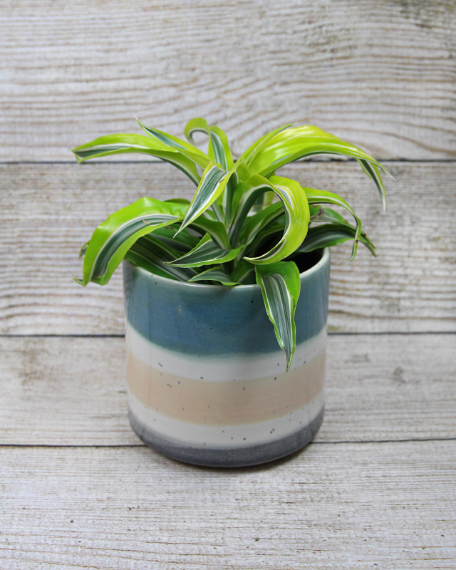 The Dracaena deremensis, or 'Lemon Surprise', is a tropical upright evergreen that can add low-maintenance height and drama to any space. Its leaves are flexible and strap-shaped, with dark green, chartreuse, and white leaves growing from the center of the plant with a slight twist, giving it a little extra interest.
