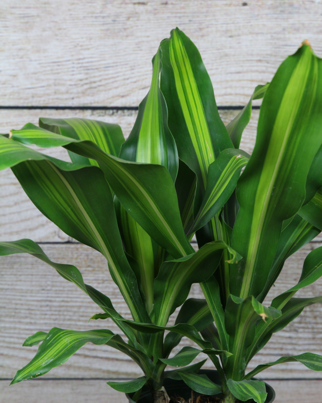 The Dracaena Marley, commonly known as a Corn Plant, is a tropical upright evergreen that can add low-maintenance height and drama to any space. Its leaves are flexible and strap-shaped in true green with chartreuse stripes running through the center of the leaf. These plants grow short, rigid stalks that resemble cane trees or corn plants. At Bath Garden Center, you'll find an assortment of Dracaena waiting to find their new home with you!