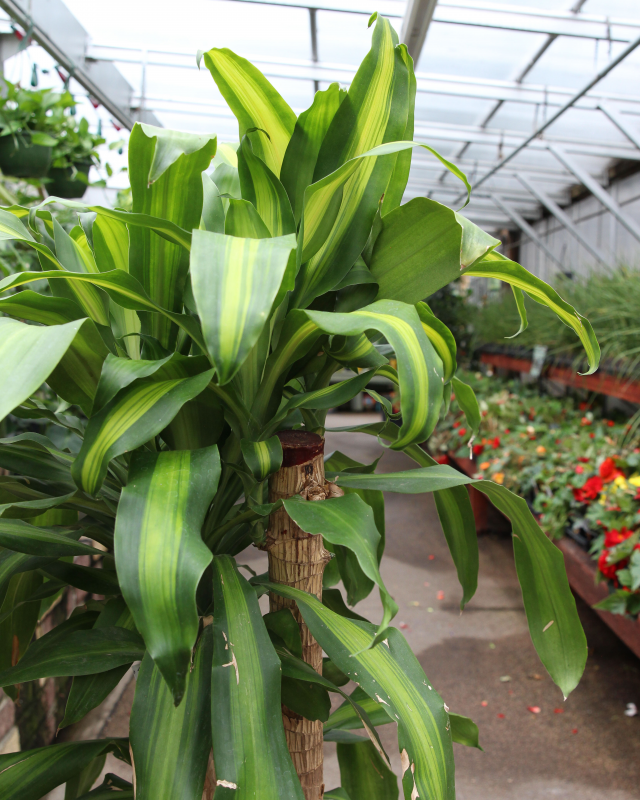 The Dracaena Mass Cane is a common and very popular houseplant for experienced collectors and beginners alike. Known for its upright growth and stylish dark green leaves striped with a lime green center, the Dracaena Mass Cane will add some tropical flair to any naturally lit room. Indoors, the Dracaena Mass Cane can grow 10-15 feet tall.