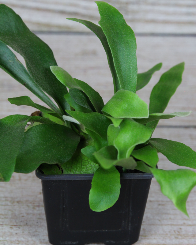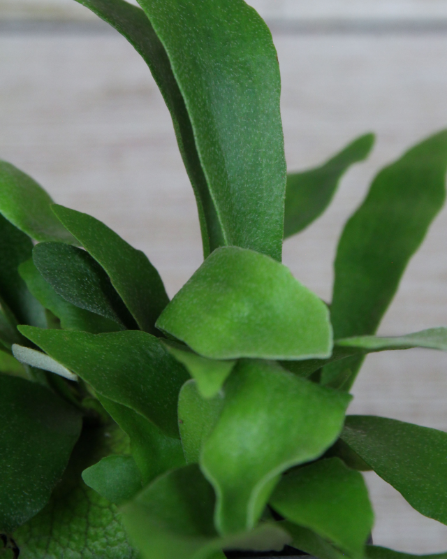 The Platycerium bifurcatum, also known as a Staghorn Fern, is a distinctive epiphytic species that produces leathery, forked fronds resembling the horns of a stag and are covered in a velvety covering of white hairs.