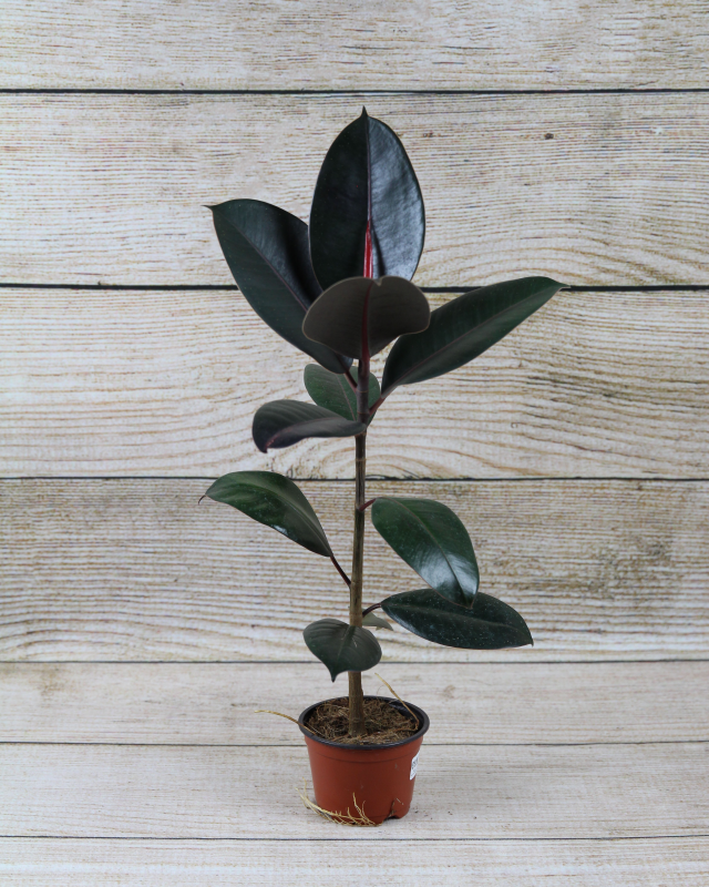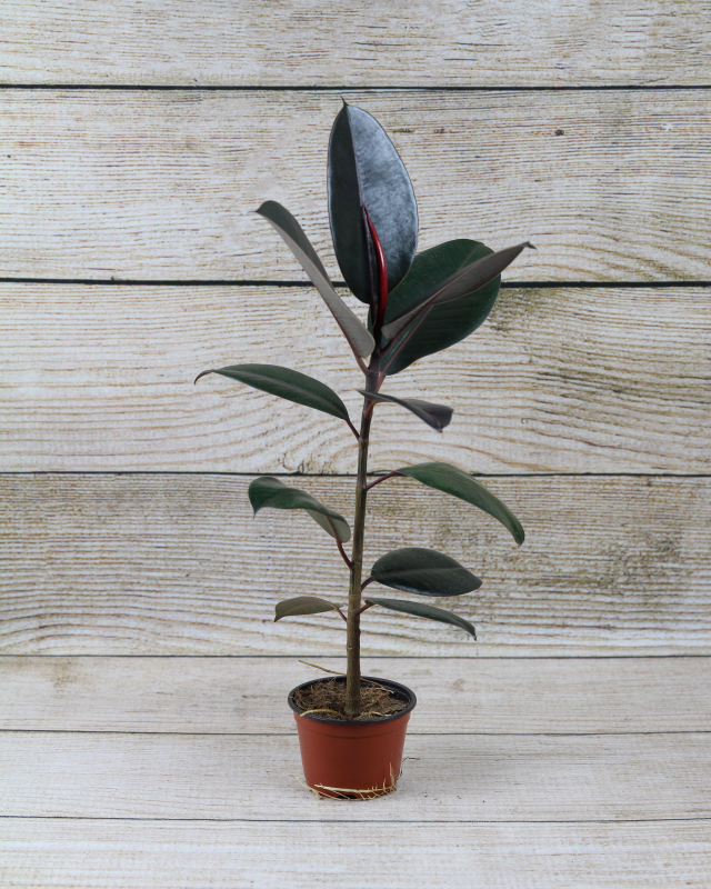 The Ficus elastica, more commonly known as a Rubber Tree, is an evergreen tree species that produces oval, glossy, leathery dark green leaves with a hint of red. This plant is an excellent air purifier.