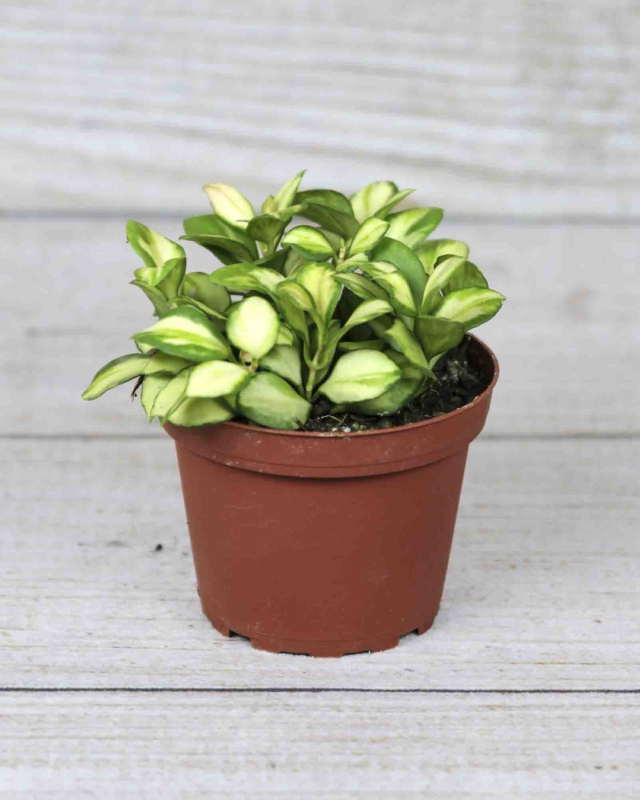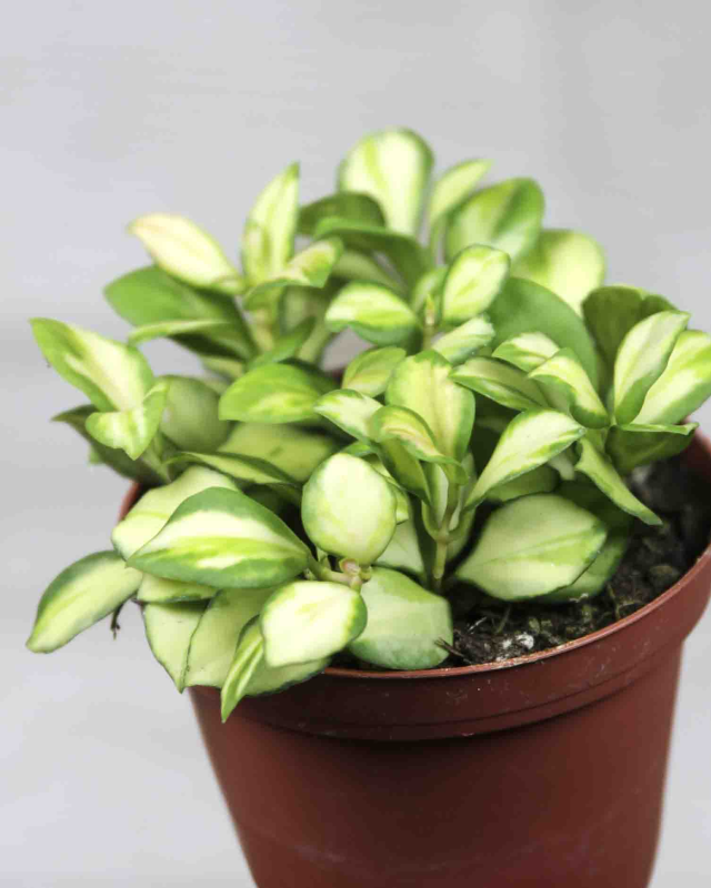 Hoya Heusckeliana is a highly sought-after variety of hoya. The leaves are typically small and oval-shaped, often displaying attractive silvery spots or a "splash" pattern, particularly in variegated forms. This Hoya has a somewhat vining or trailing growth habit, making it well-suited for hanging baskets or allowing its stems to cascade gracefully from shelves.