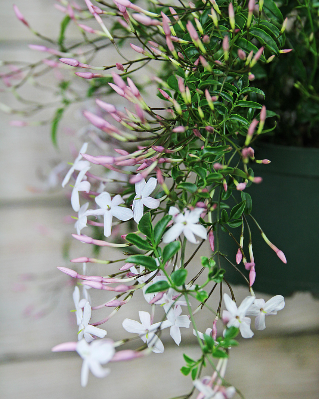 Jasmine plants are wonderfully fragrant perennials with small, dainty flowers and can bloom all year long. The white, yellow, and sometimes pink flowers are tubular with a flaring, lobed, pinwheel-like form. The leaves can be evergreen or deciduous and usually are composed of two or more leaflets, although some species have simple leaves.