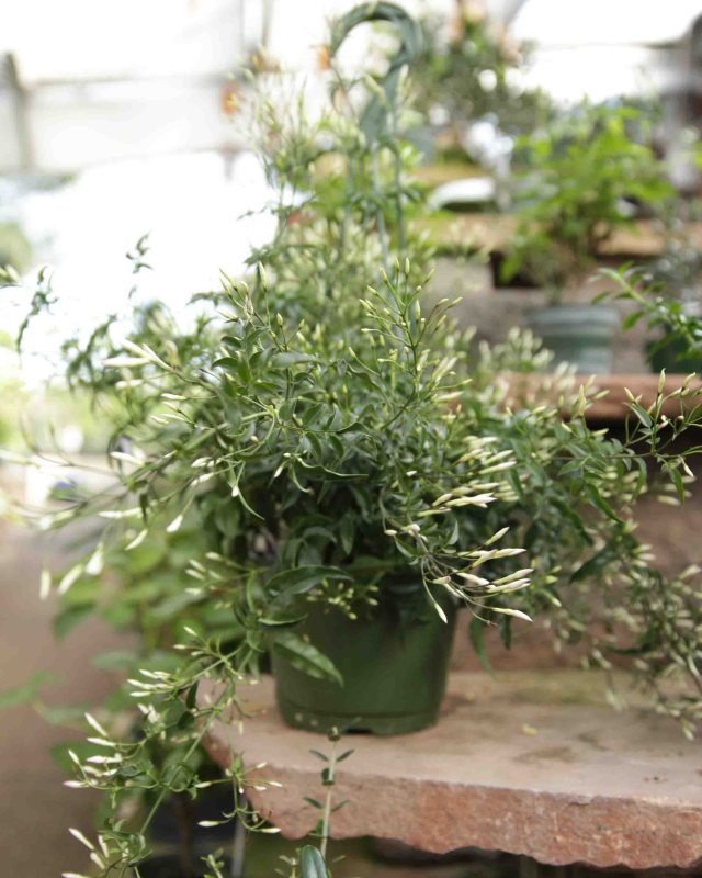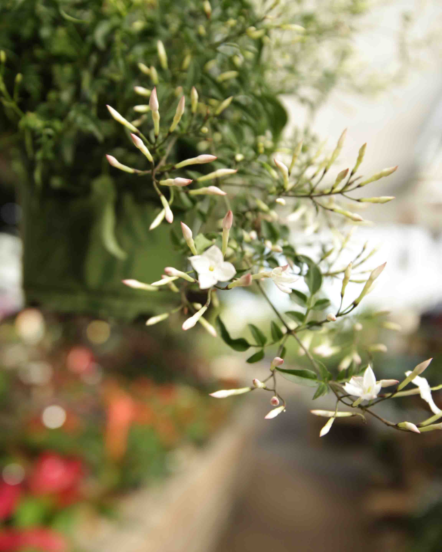 Jasmine plants are wonderfully fragrant perennials with small, dainty flowers and can bloom all year long. The white, yellow, and sometimes pink flowers are tubular with a flaring, lobed, pinwheel-like form. The leaves can be evergreen or deciduous and usually are composed of two or more leaflets, although some species have simple leaves.