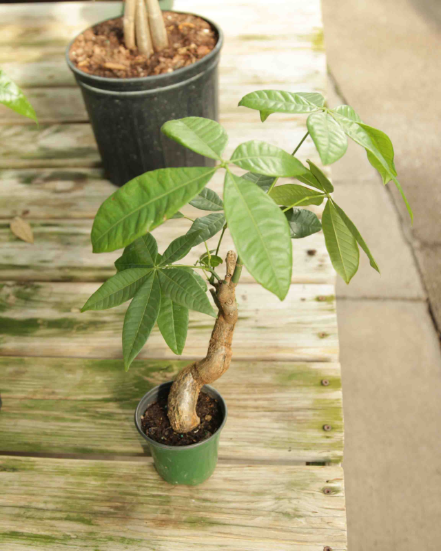 The Money Tree, also known as the Pachira Fortune Tree, is a symbol of luck and prosperity. Its bark is gray and smooth and the trunks of money trees are often artistically braided. The slim stems contain 5-7 glossy green, palmate leaves and indoors they can reach 3-6 feet.