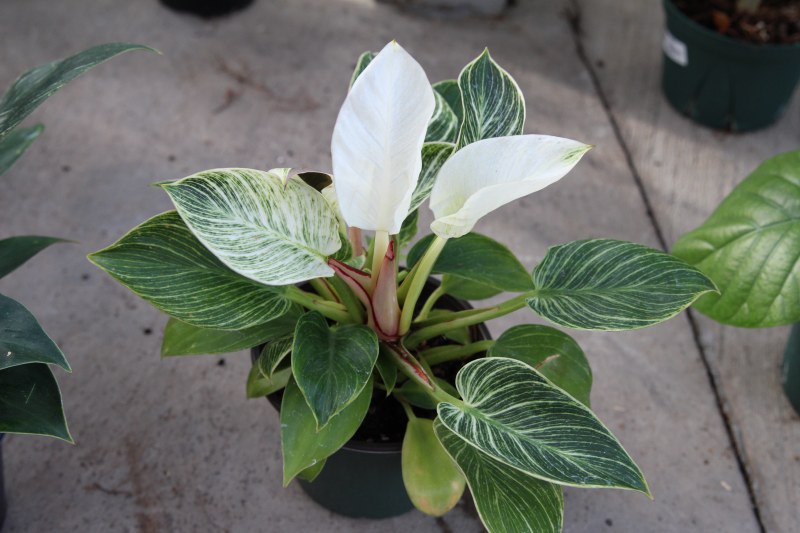 The Philodendron 'Birkin' is a lovely, especially trendy tropical species that produces large, dark green leaves that are generously streaked with creamy-white vertical lines.