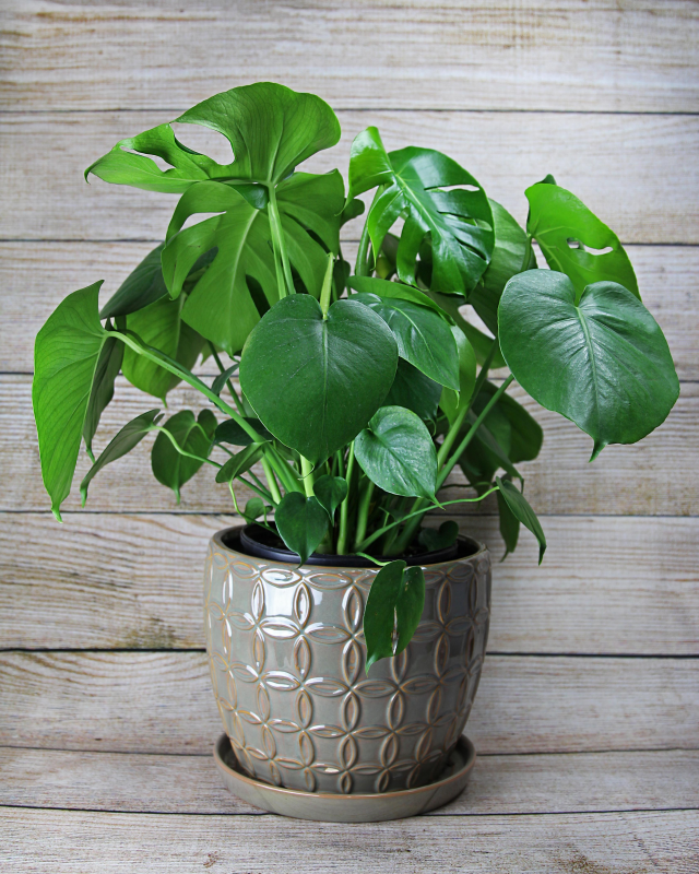 The Monstera deliciosa or 'Split-Leaf Philodendron' is an evergreen climbing vine that is most noted for its large, perforated leaves (fenestrations) that grow on thick plant stems with long aerial roots.
