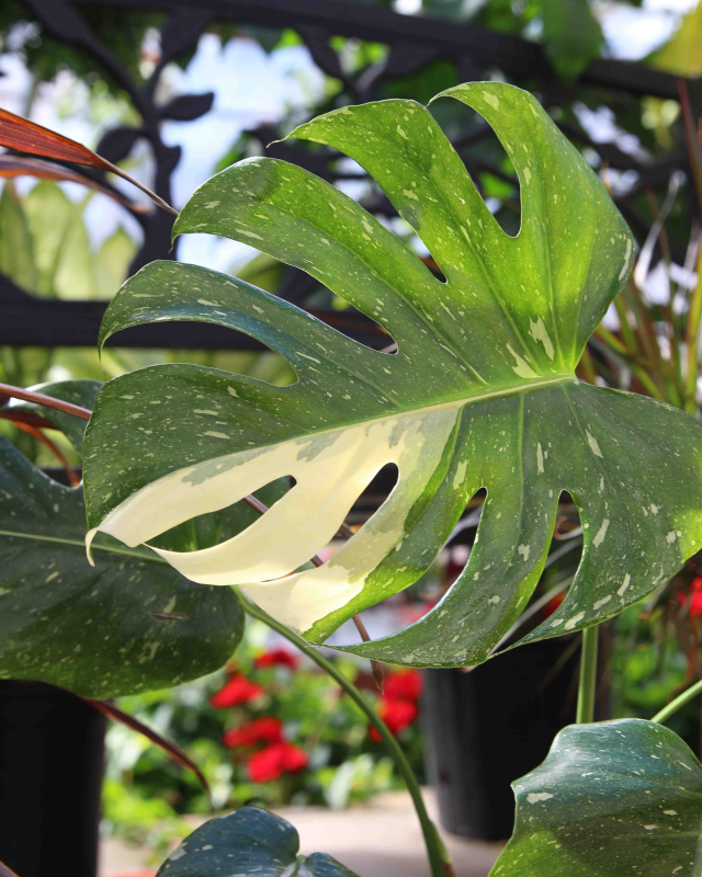 The Monstera Thai Constellation, also known as the Variegated Monstera or Monstera Deliciosa Thai Constellation, is a stunning and sought-after cultivar of the popular Monstera Deliciosa plant. It is prized for its unique and eye-catching variegation, which features creamy white or yellow splotches and splashes on its dark green leaves.