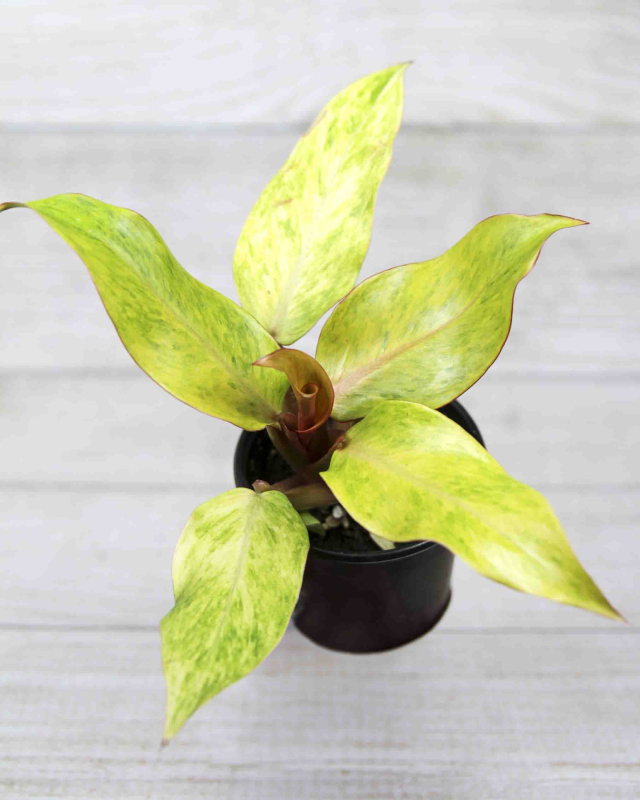 With a climbing growth habit, Philodendron 'Orange Marmalade' showcases a fascinating color transformation. Its fresh leaves emerge with a unique mottled orange pattern, slowly transitioning to green while often displaying delicate light orange speckles.