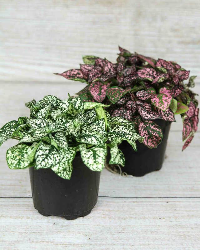 Polka dot plants, also known as Hypoestes phyllostachya, are known for their vibrant foliage. These cheerful houseplants come in a variety of colors, with spots of pink, red, white, or even light green contrasting against dark green leaves. They typically grow as a bushy plant with oval-shaped, fuzzy leaves.