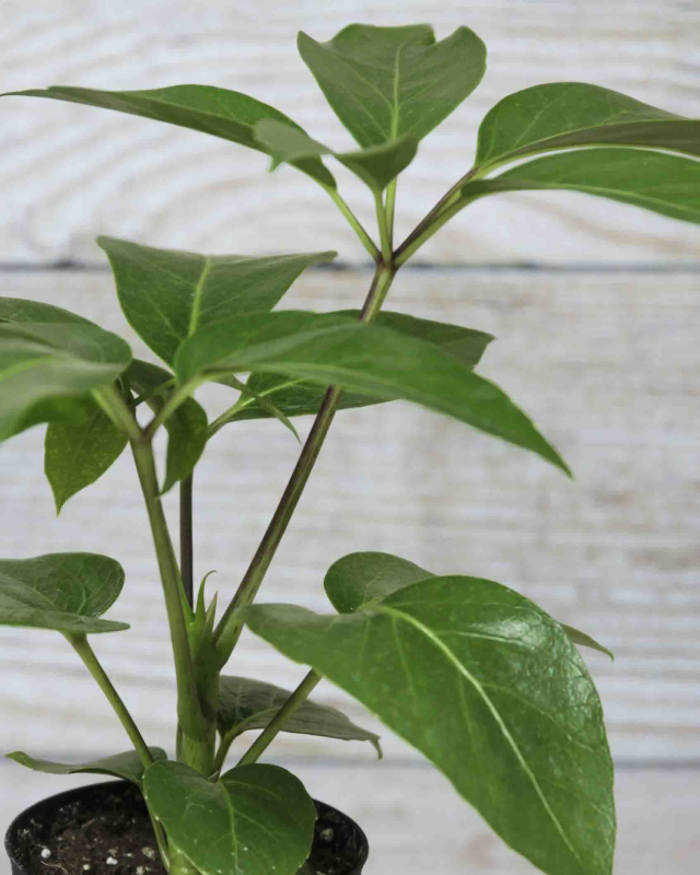 Schefflera Alpine, commonly known as an Umbrella Tree, is an easy-to-care-for tropical houseplant that can grow up to 10 feet tall. It is perfect for a large, naturally lit corner of your home or office. The Schefflera Alpine has broad, glossy green leaves and develops from bushy to a tree form as it ages.