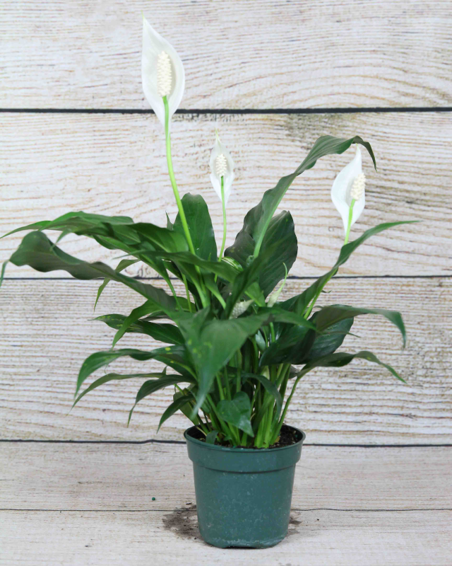 The High Five Peace Lily is a popular houseplant that is known for its striking appearance and air-purifying abilities. Its large, dark green leaves are oval-shaped and have a glossy sheen. Peace Lilies are relatively easy to care for and can thrive in a variety of conditions. They prefer bright indirect sunlight, but they can tolerate low light levels.