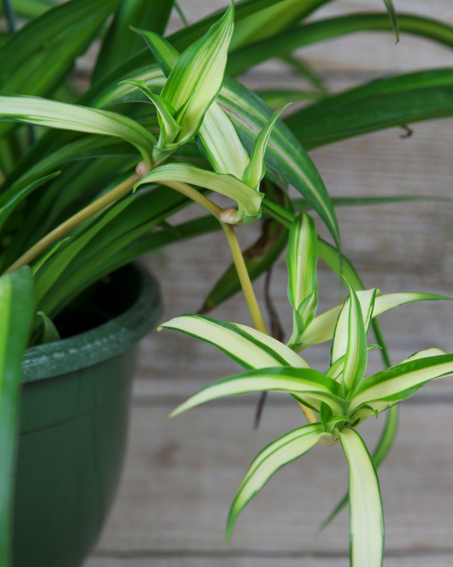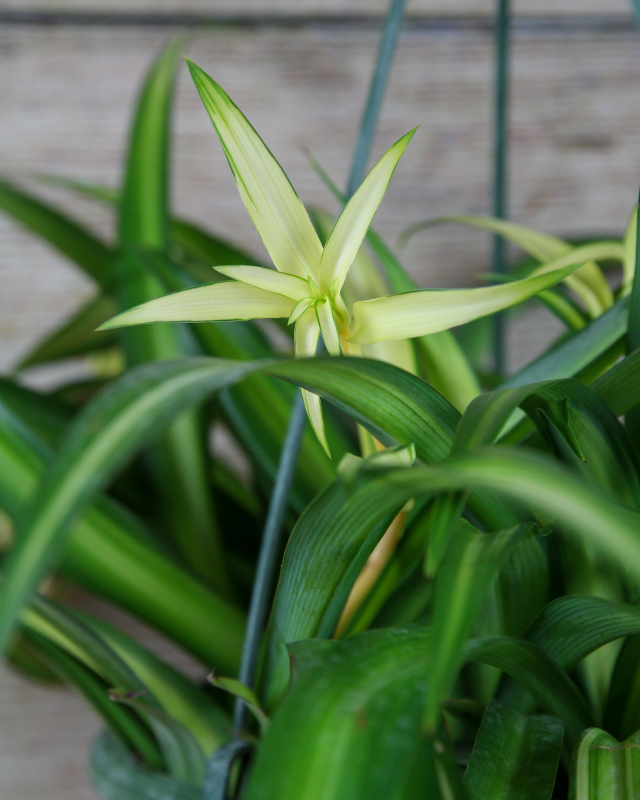 The Chlorophytum comosum, or Spider Plant, is one of the most well-known and widely cultivated houseplants around. Especially good plants for pet parents, this plant features flowing grassy leaves in varieties of white and green. They grow from a central tuft that flows gracefully out of any pot.