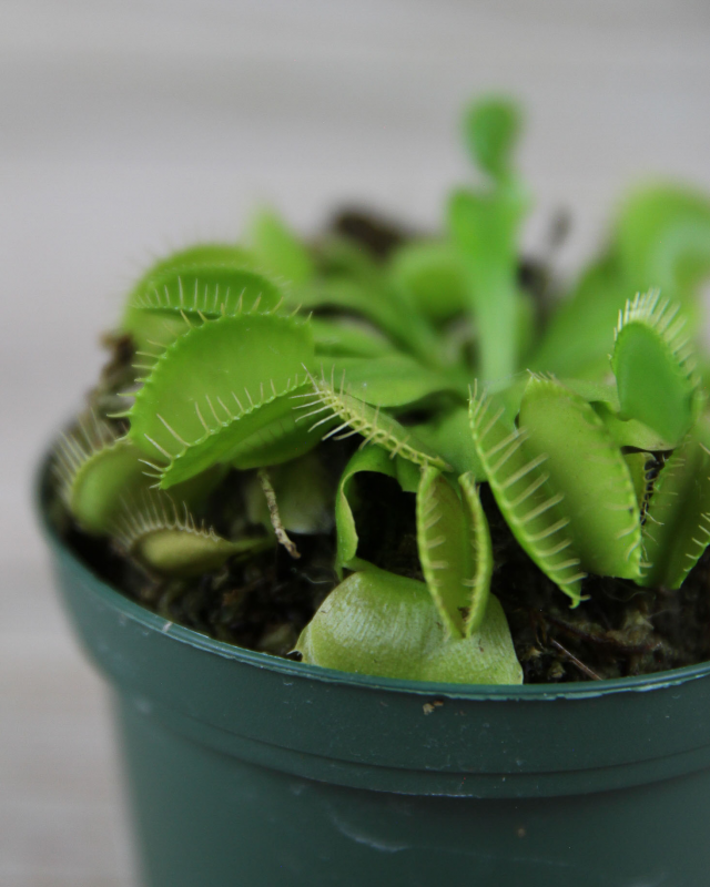 The Venus Fly Trap is a carnivorous plant that is composed of 4-7 leaves, each containing its own trap at the end. The mouth-like trap is filled with hair-like trichomes that trigger the trap when stimulated. This unique plant feeds on small insects by closing its trap and releasing digestive enzymes to consume its prey.