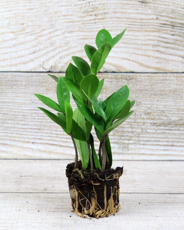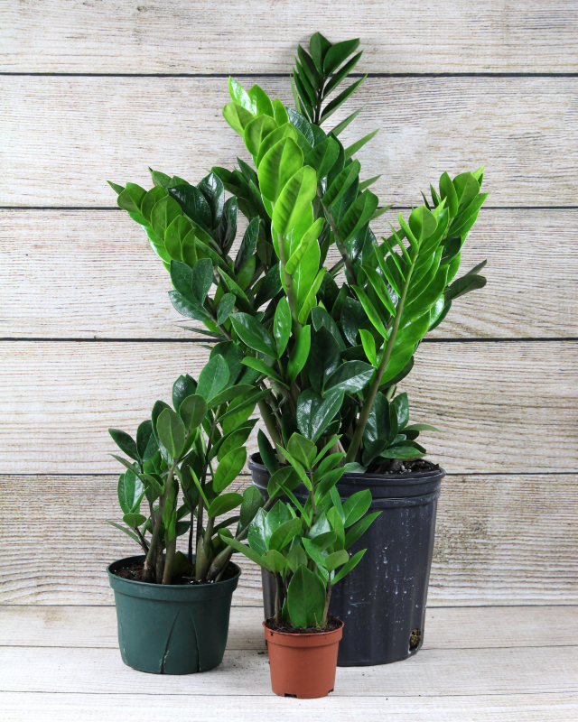The Zamioculcas zamiifolia, also known as a ZZ Plant or Eternity Plant, is an evergreen perennial with dark, glossy leaves that grow in rows on succulent rhizomes just under the soil's surface. A native to the dry grasslands of Africa, it is a hardy, low-water favorite.