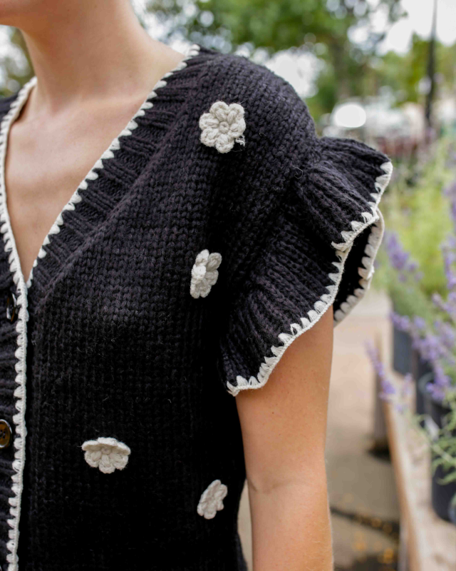The Blu Pepper Ruffled Knit Cardigan is a stylish and feminine layering piece designed to add a delicate touch to your wardrobe. The defining characteristic is the ruffle detailing along the hem and on the cuffs/sleeves, giving the cardigan a romantic and soft look. The combination of knit texture and ruffles provides a perfect balance of comfort and elegance, making it suitable for both a polished office look or a cozy, feminine weekend outfit.