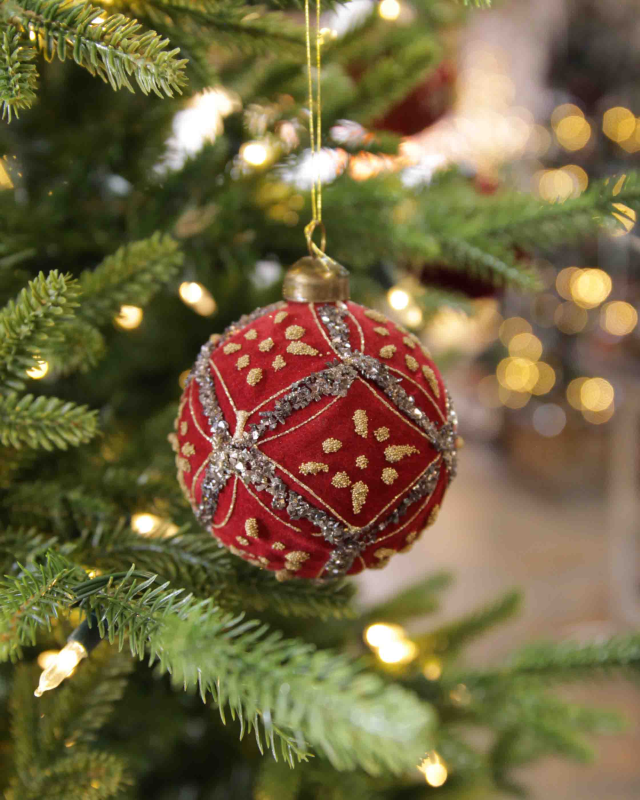 This burgundy & gold velvet ornament is a stunning addition to your holiday decor collection. Crafted from high-quality velvet, this ornament features a rich burgundy hue complemented by elegant gold accents, creating a sophisticated aesthetic that enhances any festive setting.