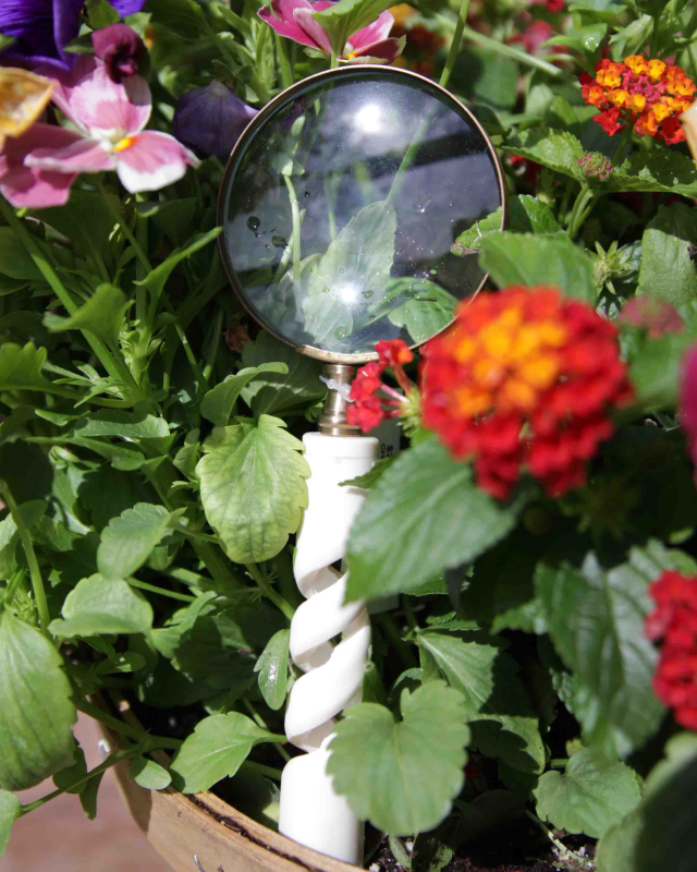 This unique magnifying glass design combines functionality and natural aesthetic. The handle is crafted to mimic the texture and appearance of natural bone. The magnifier itself is a traditional glass lens set in a brass frame. Perfectly fitting into your cabinet of curiosities!
