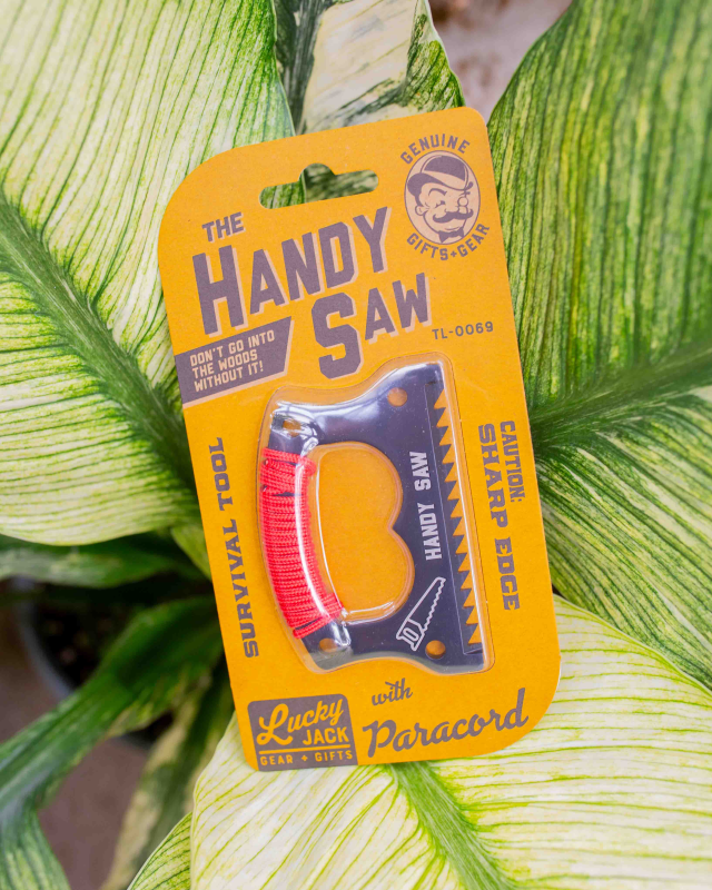 The Handy Saw – Rough, Tough, and Ready for Anything. This must-have survival tool is perfect for camping, hiking, or even trapping. Use the included paracord to lash the saw to a branch to extend the handle, and you've got a great multi-purpose survival tool.