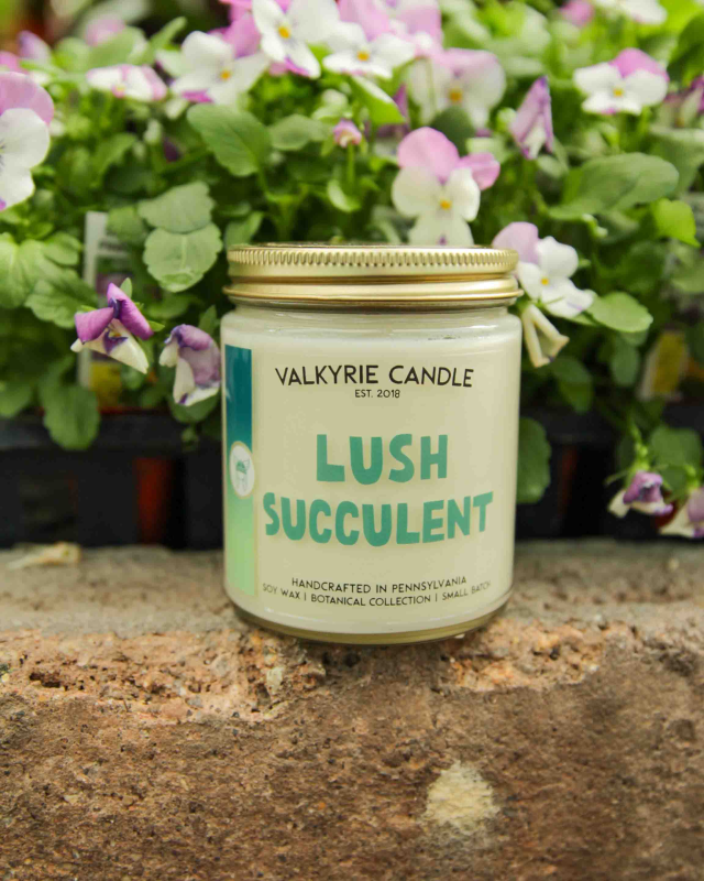 The Lush Succulent candle by Valkyrie Candles is a breath of fresh air, capturing the crisp, dewy essence of a sun-drenched greenhouse.