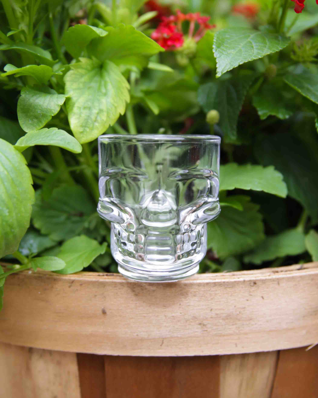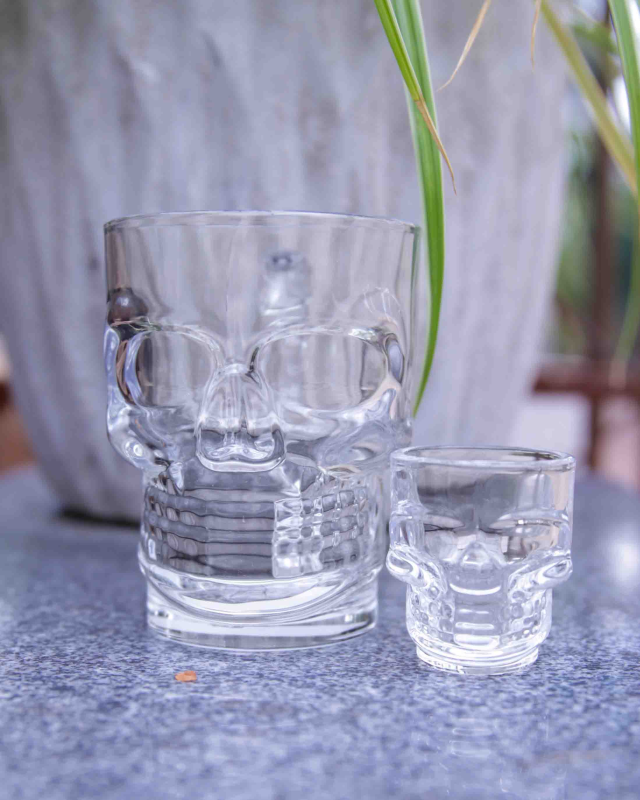 The glass skull shot glass is a great themed item for Halloween! Combining a playful and spooky aesthetic, these shot glasses are made from durable, heavyweight, clear glass. Make it a set with the Skull Beer Stein!