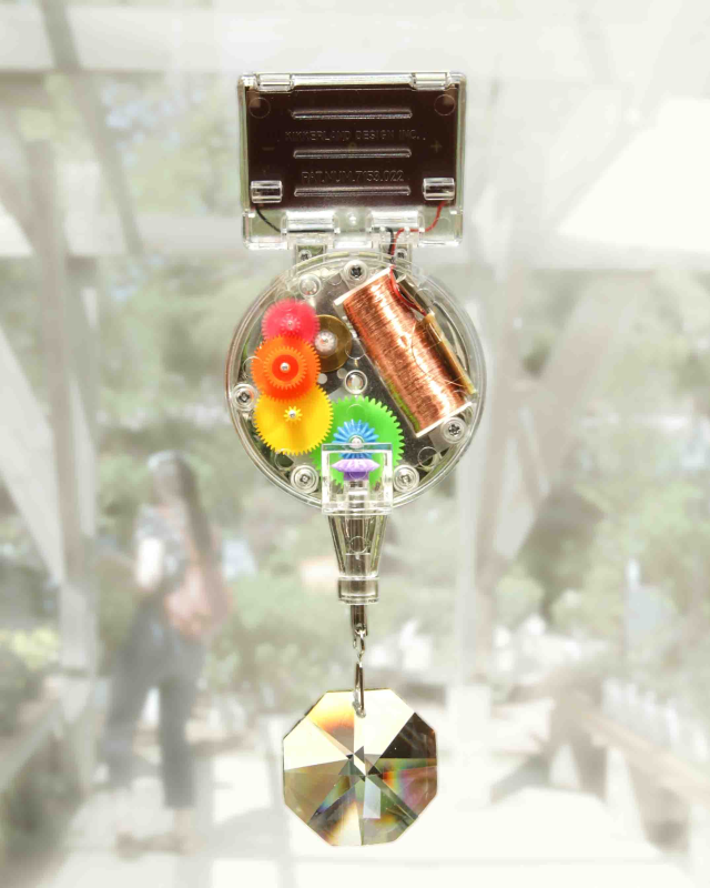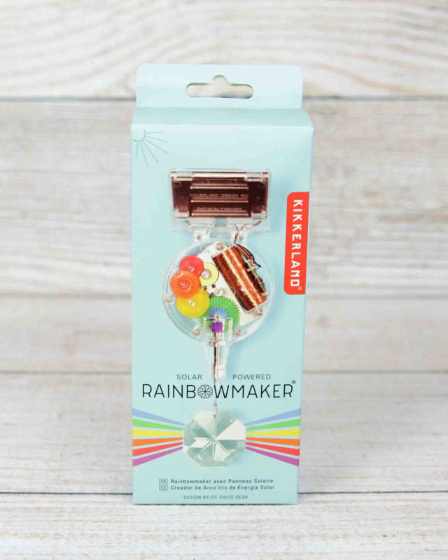 Kikkerlands popular collection of magical Rainbow Maker designed by David Dear are beloved by all ages. The suction cup Rainbow Maker will stick to your window and work its' rainbow magic. The cleverly designed solar panel will rotate the crystal and refract light in all directions. This Rainbow Maker has clear housings that allow you to watch the inner working gears rotate in perfect synchrony by the power of the sun; they have to be seen to be believed!