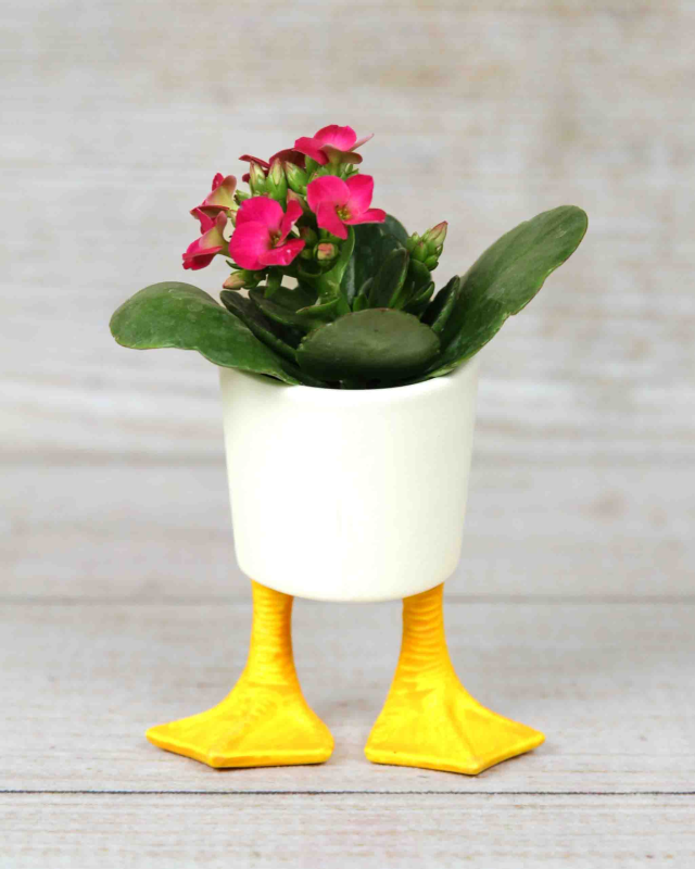 This adorable planter, crafted from porcelain, features unique little duck feet as its base. The hand-made design ensures each planter is one-of-a-kind, boasting slight variations in shape and color. It's the perfect size for herbs, succulents, or small cacti.