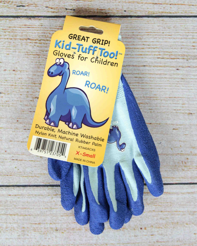 Kid-Tuff Too! gloves by Bellingham are fun and functional gardening gloves designed for little helpers. They come in a variety of colors and feature a colorful, kid-friendly design. Made from a durable nylon knit shell, Kid-Tuff Too! gloves can withstand the wear and tear of active play. A natural rubber palm provides a non-slip grip, perfect for climbing, exploring, or helping in the garden (with adult supervision, of course!).