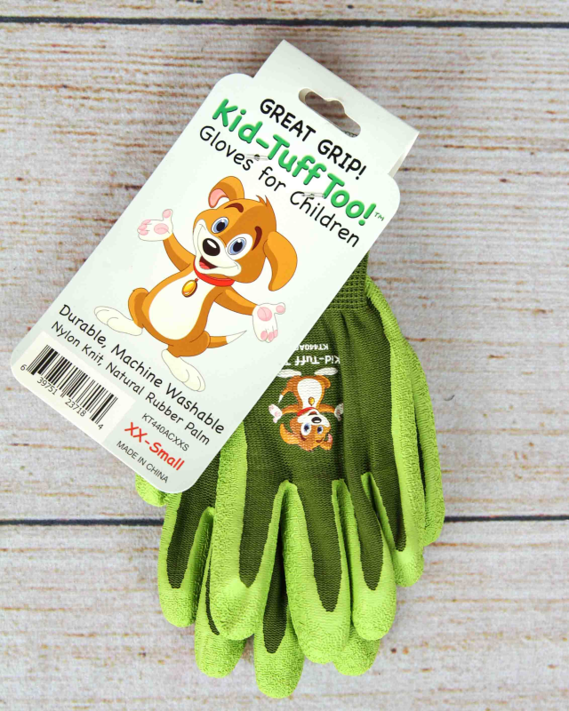 Kid-Tuff Too! gloves by Bellingham are fun and functional gardening gloves designed for little helpers. They come in a variety of colors and feature a colorful, kid-friendly design. Made from a durable nylon knit shell, Kid-Tuff Too! gloves can withstand the wear and tear of active play. A natural rubber palm provides a non-slip grip, perfect for climbing, exploring, or helping in the garden (with adult supervision, of course!).