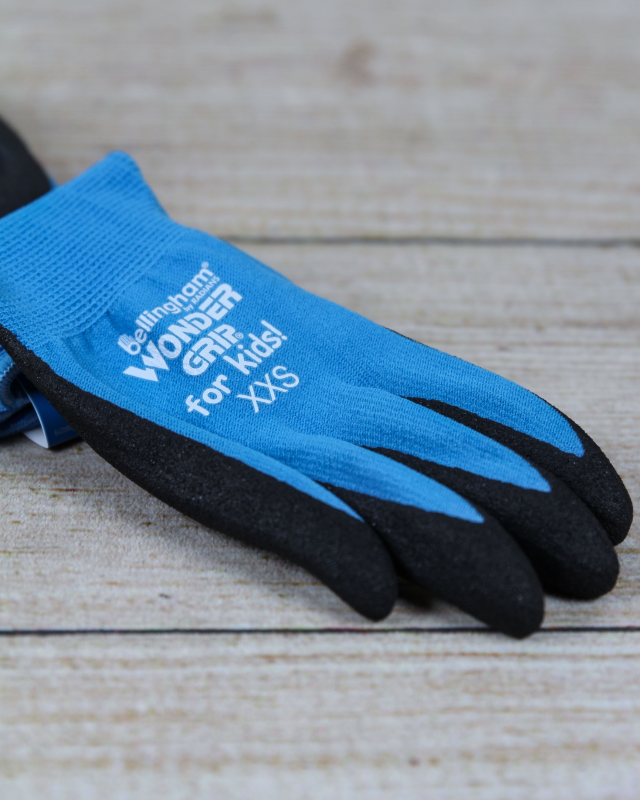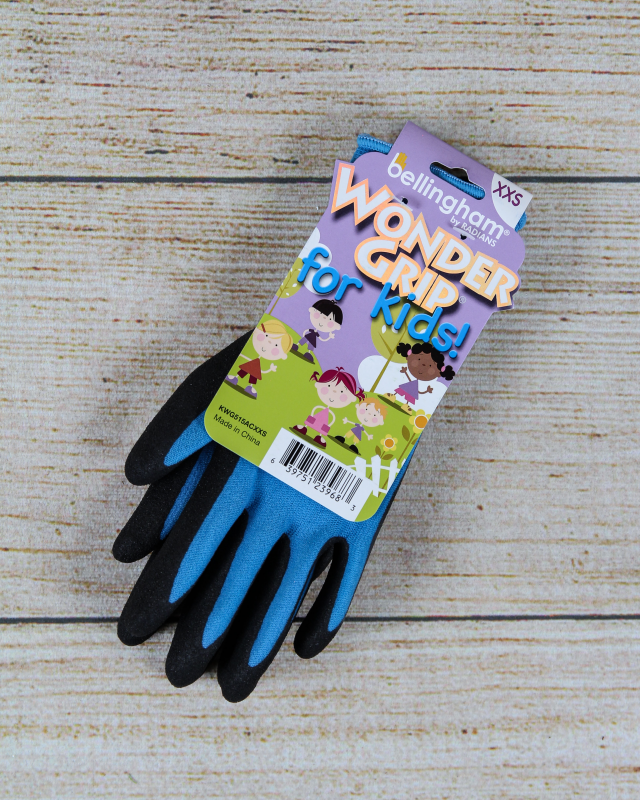 Wonder Grip Kids Gloves feature a breathable nylon/spandex knit glove with a textured nitrile palm, perfect for protecting little hands in the garden. Bellingham Wonder Grip Gloves for Kids are durable and come in XS and XXS sizes for a good fit.