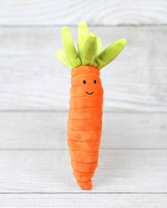 The Vivacious Vegetable Carrot Jellycat is a wonderfully whimsical and delightfully detailed plush toy that brings the cheerful charm of a garden-fresh carrot to life! Part of Jellycat's popular "Vivacious Vegetables" collection, this little root vegetable is bursting with personality and incredibly soft to the touch.
