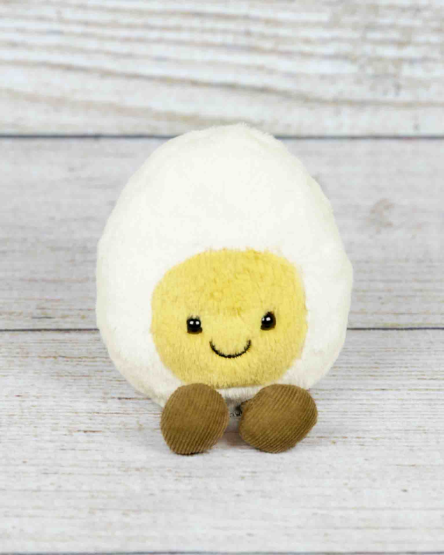 Start your day in a snuggly way with Amuseables Boiled Egg! This breakfast buddy has fluffy white fur, a yummy yellow yolk and a super cute smile. Keep an eye on this scamp with those cordy feet, or you might end up with a runny egg!