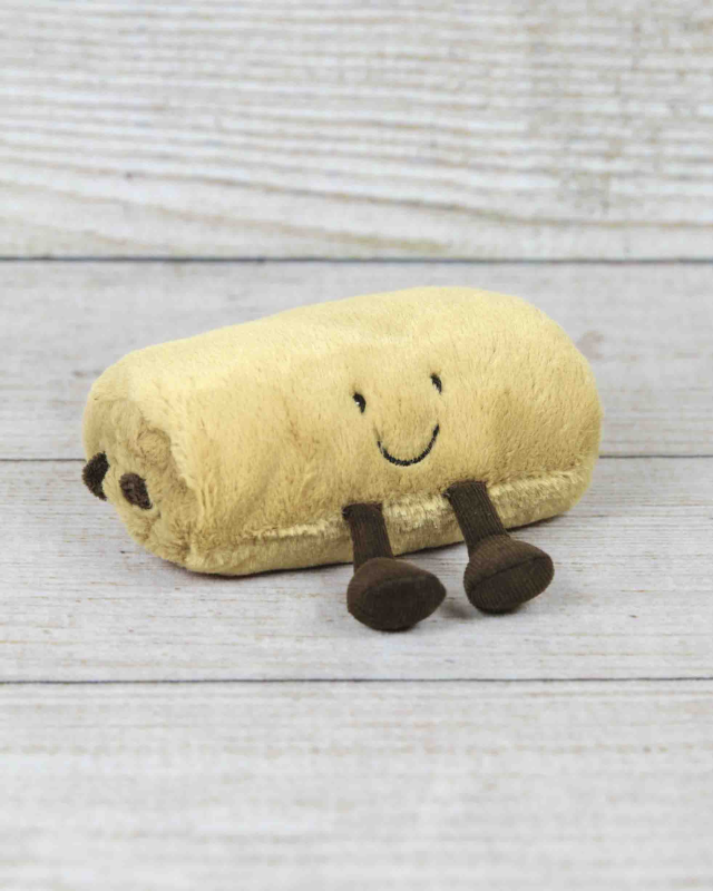 Amuseables Pain Au Chocolat is a pastry poppet, full of chunky suedey chocolate! This golden pal is beautifully baked, with layers of soft fur and neat cordy boots. Just the mascot for a chic boulangerie!
