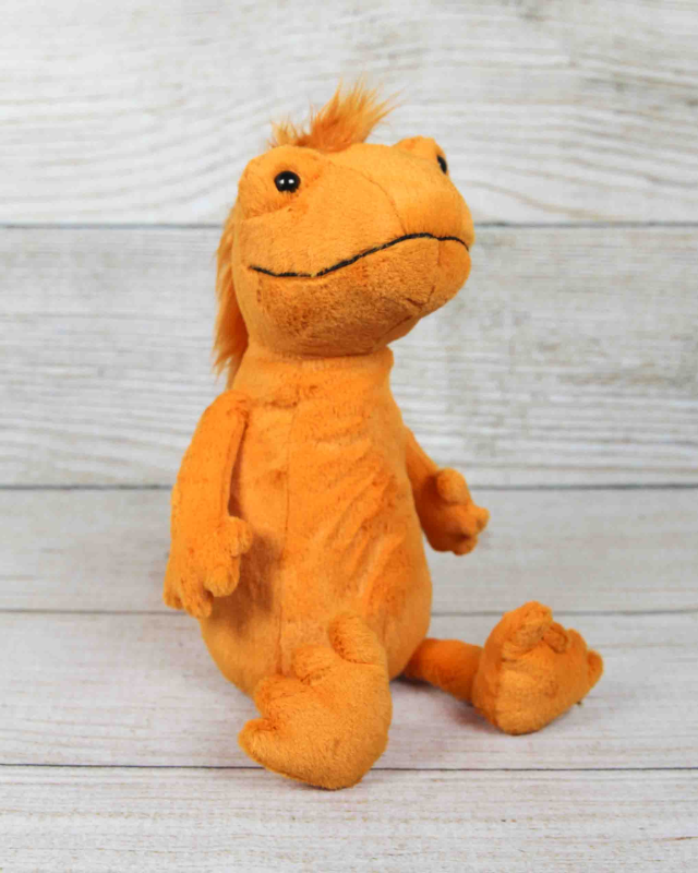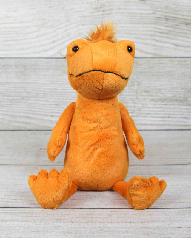 Cruz Crested Newt is easy to spot on the dancefloor! In bold tangerine, with a silky-punky hairdo all the way down and the widest smile you’ll ever see, this fizzy amphibious friend just loves to boogie. Though sitting down for a rest also has its charms!