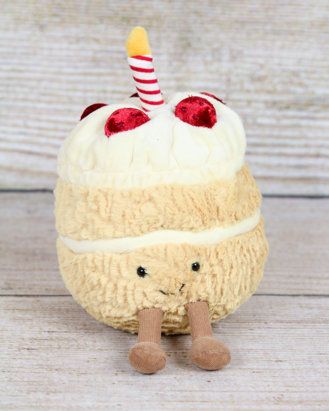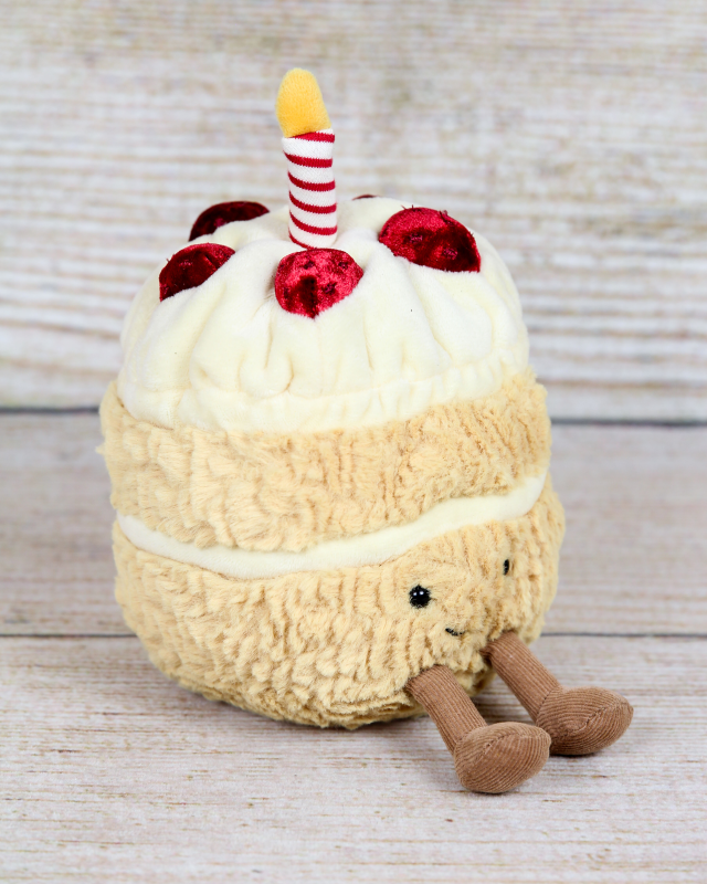 Celebrate in style with the Amuseable Birthday Cake from Jellycat! This plush delight brings the joy and sweetness of birthdays to life with its colorful layers, festive candles, and a big smile. Soft and huggable, it's perfect for playtime or cuddles. Whether you're celebrating a special occasion or simply want to add a touch of whimsy to your collection, the Amuseable Birthday Cake is a must-have. Make a wish and bring home this delightful plush treat.