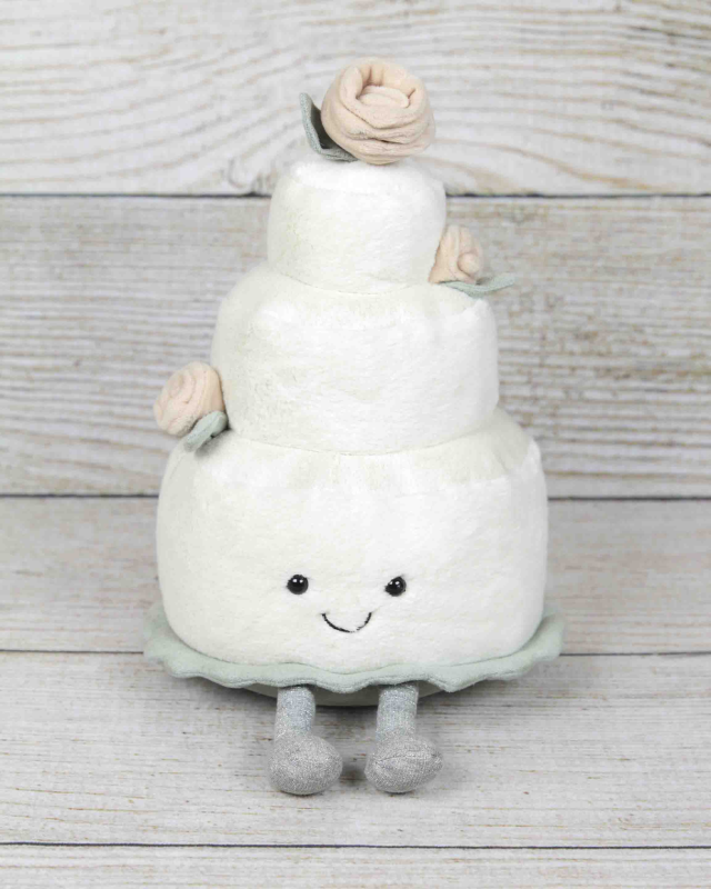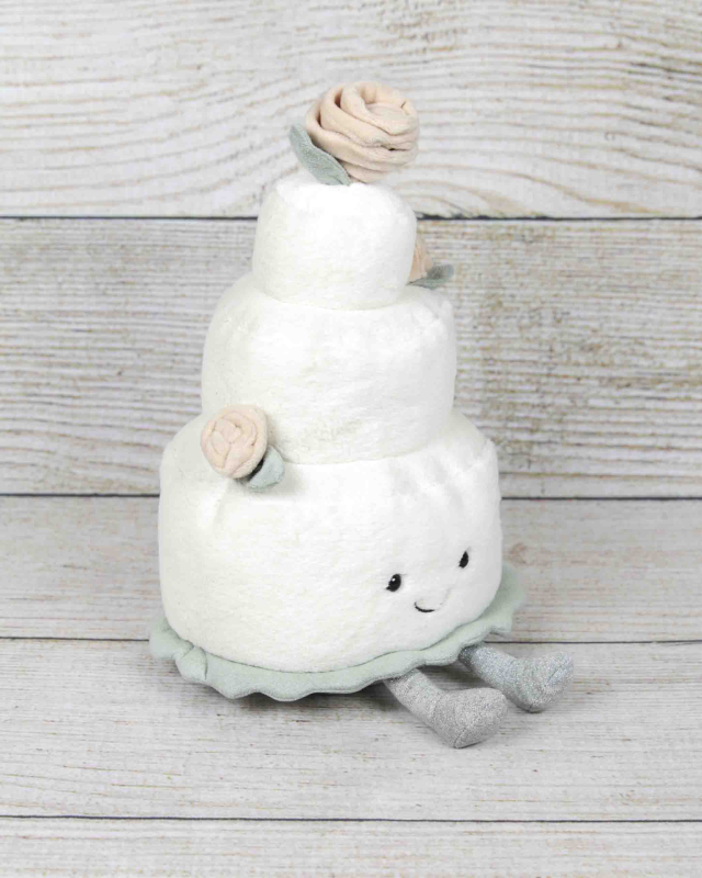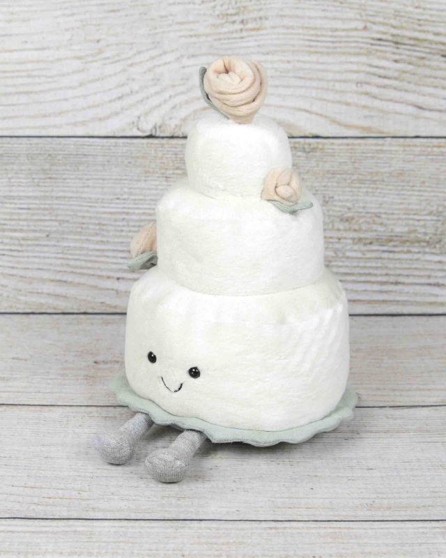 A perfect gift for the happy couple, Amuseables Wedding Cake is the long lasting joy beyond the day of celebrations. Exquisite in soft cream fur and a pair of sparkly jersey legs, highlighted with floral details of blush flowers and and sage leaves.