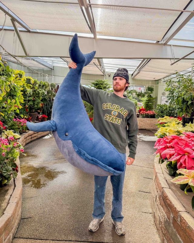 Gilbert the Great Blue Whale is a stunning and substantial plush toy designed to capture the majesty and cheerfulness of the real-life giant. Beautifully blue with a "biggest balleen grin." He has a combed grey belly, a half-moon tail, and flappy fins. Gilbert is made of midnight blue fur with a soft, thin grey cordy underbelly.