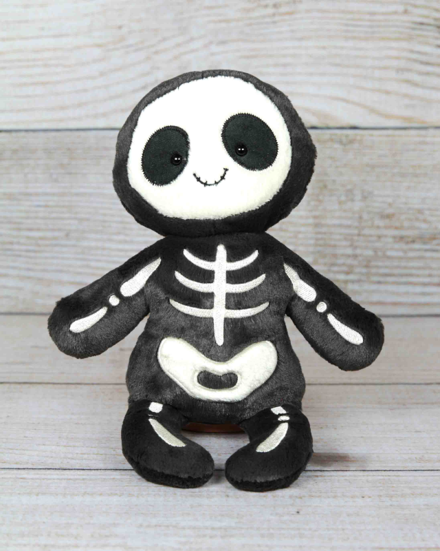 Parading out of the haunted house, it's affable Skeleton Bob! Softy Bob has licorice fur with lots of fuzzy bones. His suedette eyes have embroidered edges and tiny, shiny pupils. This cheery skeleton's clacking along, with nobody to stop him!